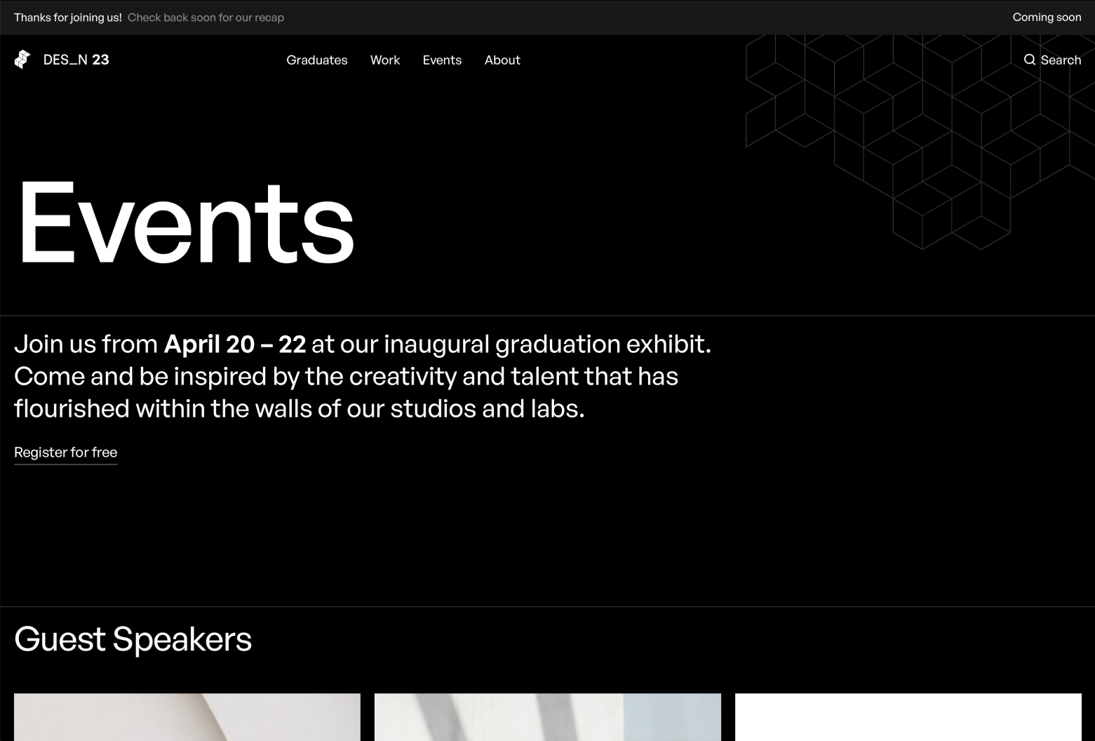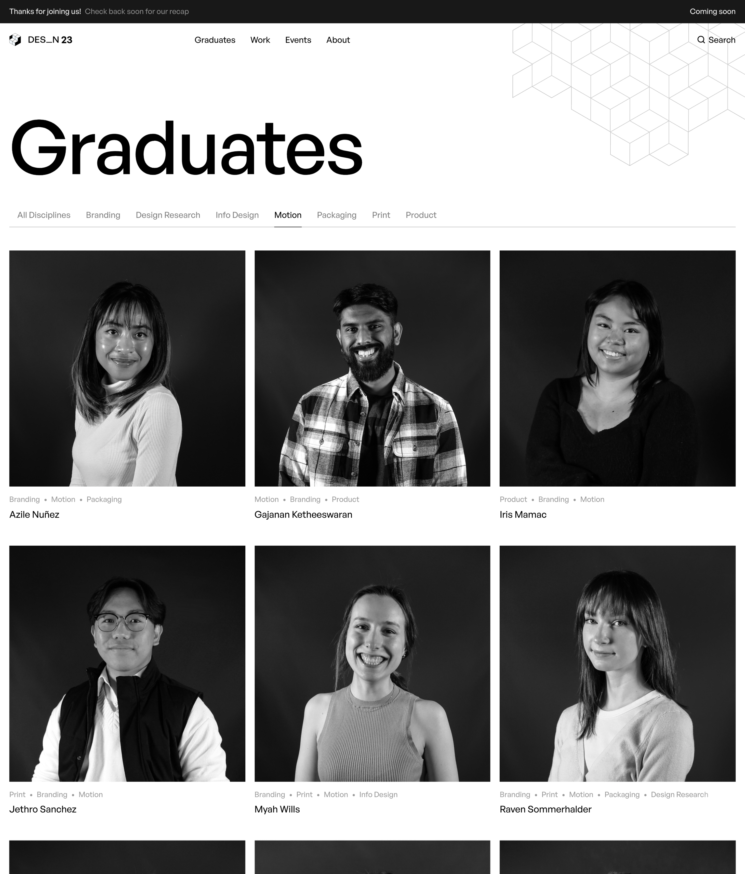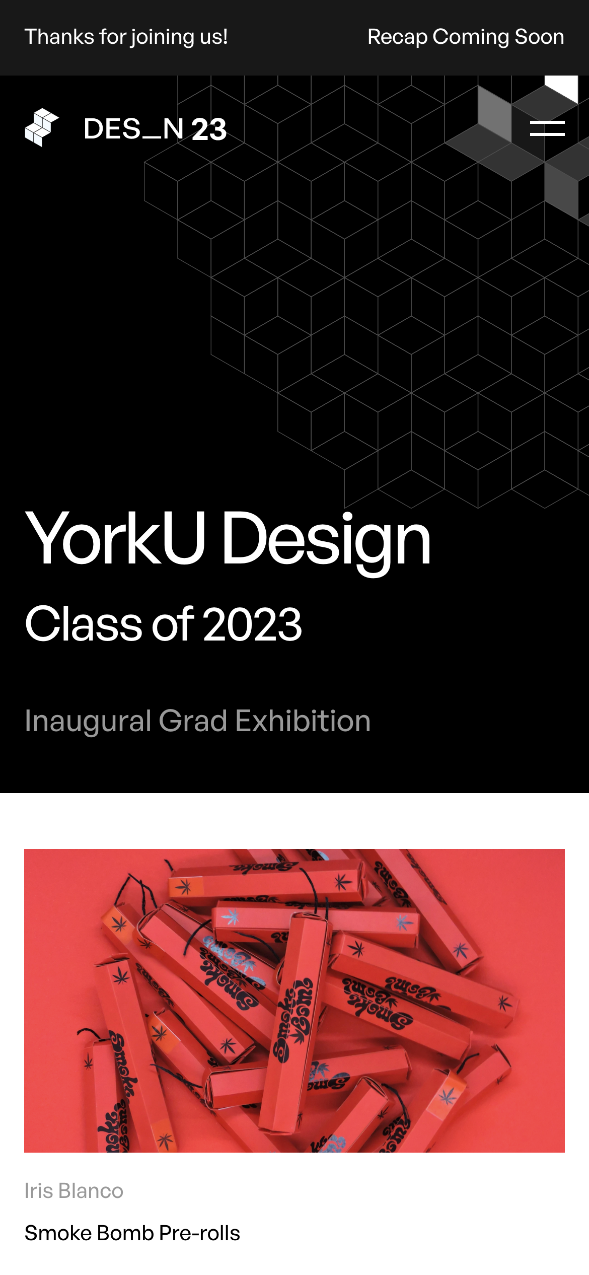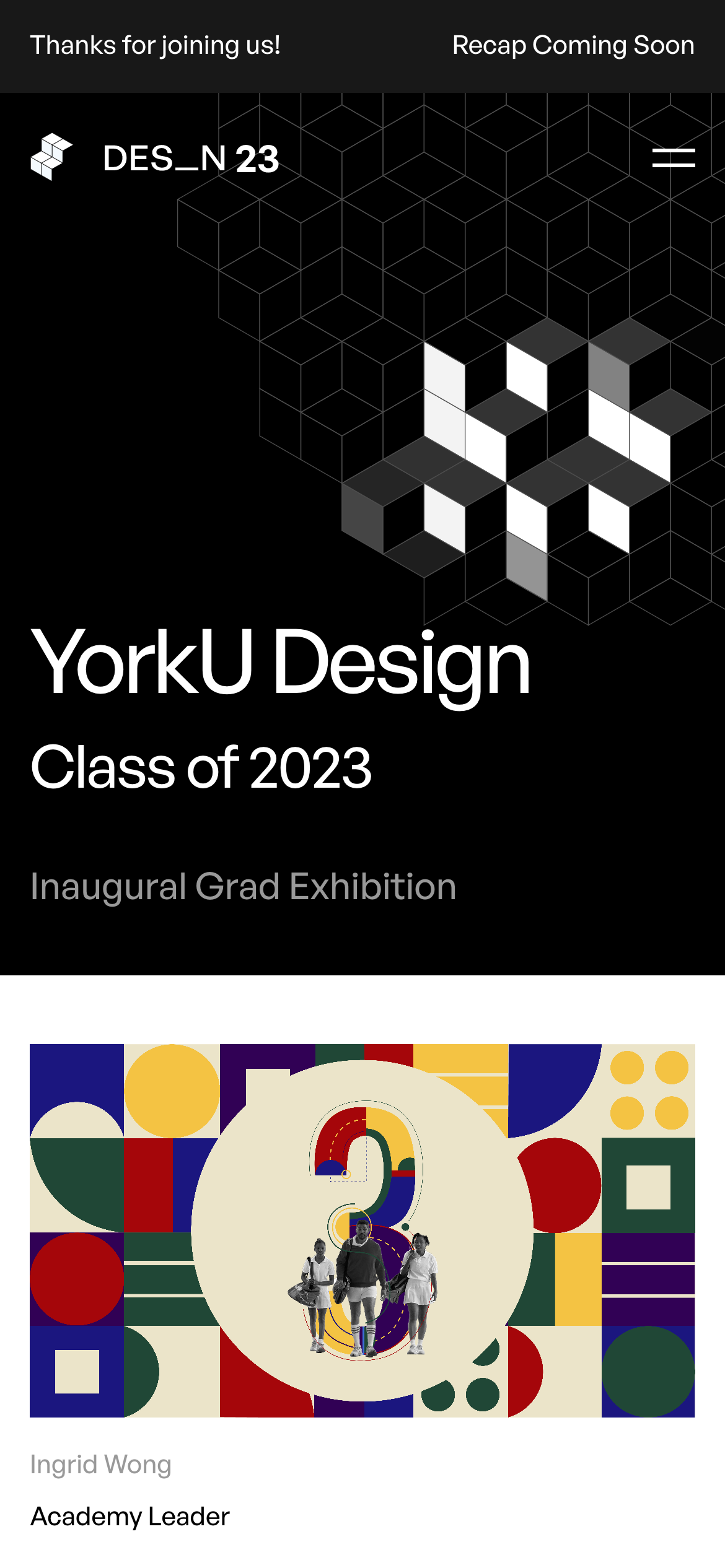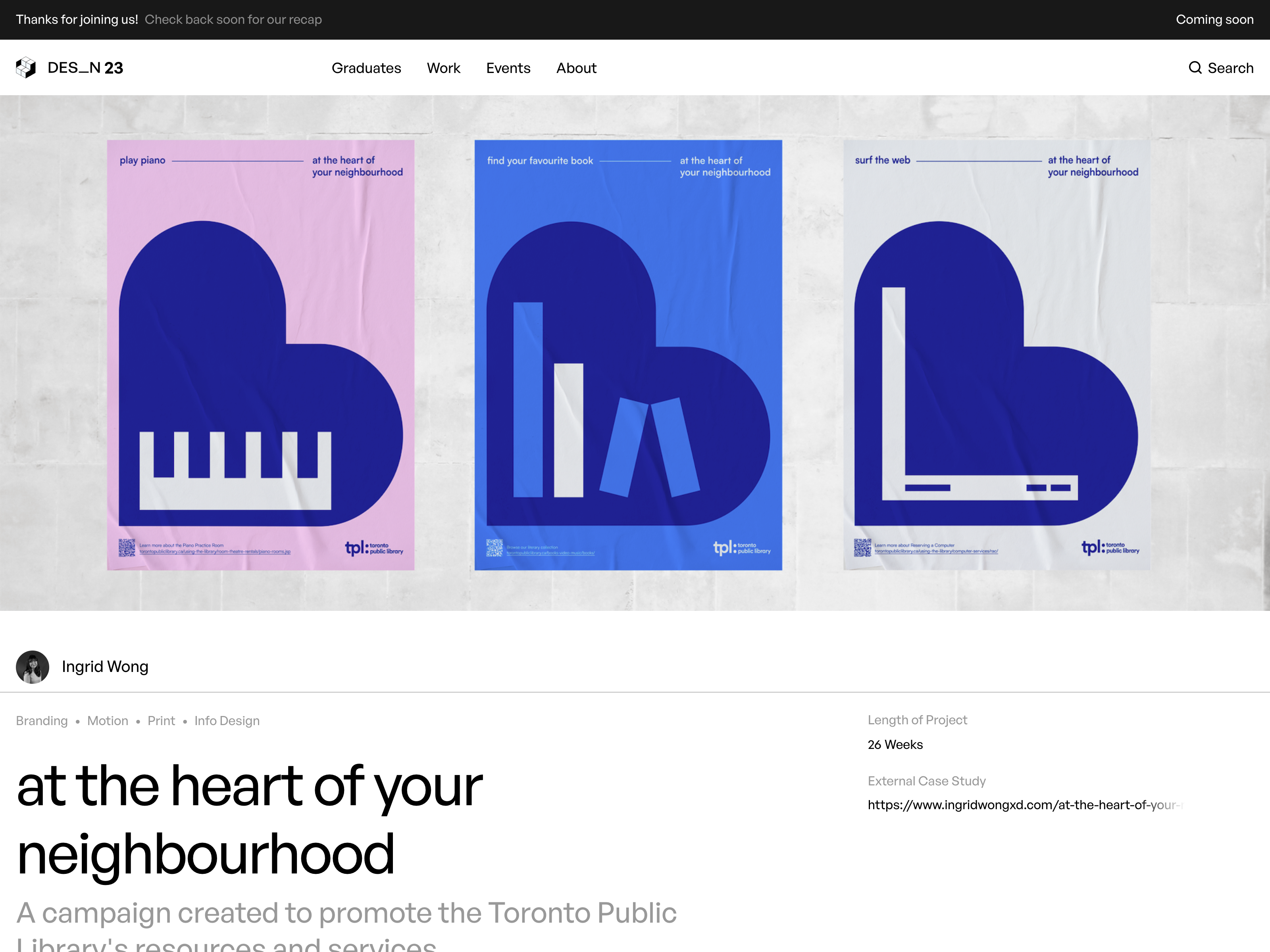 On a personal note, this project is significant because it marks the end of a four-year journey in design education. This program stretched and challenged me as a creative thinker, and introduced me to many incredible people along the way. Working alongside my colleagues and friends to properly showcase our cohort's culminating work was a fulfilling way to close out my time at York University. Conversely, this site also marks the beginning of a new era of designers. As the first cohort of graduates in the York Program in Design, it was a unique opportunity to introduce the wider community to a new program that is sure to produce high quality talent in the years to come.